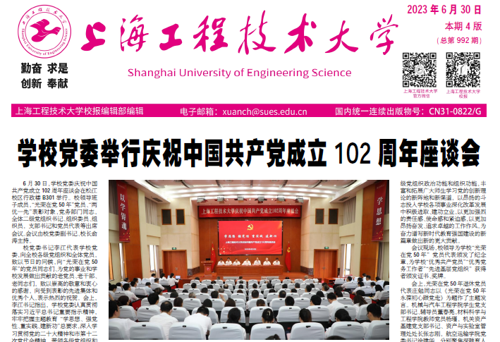6月30日,学校党委庆祝中国共产党成立102周年座谈会在松江校区行政楼B301举行。校领导班子成员,“光荣在党50年”党员、“两优一先”表彰对象,党务部门同志,全体二级党组织书记、组织委员、组织员,支部书记和党员代表等出席会议。会议由校党委副书记、校长俞涛主持。