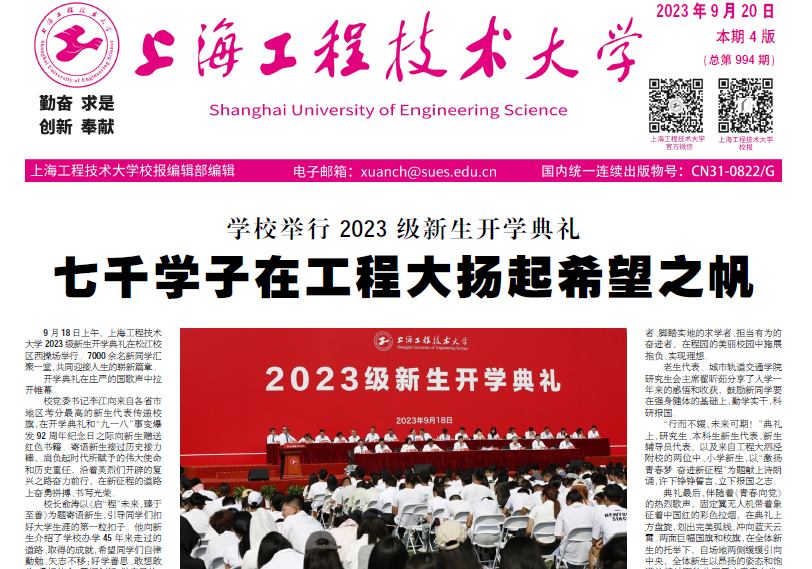 9月18日上午,上海工程技术大学2023级新生开学典礼在松江校区西操场举行。7000余名新同学汇聚一堂,共同迎接人生的崭新篇章。