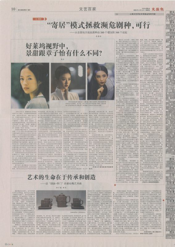 2018年4月12日,由上海工程技术大学艺术设计学院李芃教授与其指导的硕士研究生李千蕙在高水平学术出版物《文汇报》(理论版)上发表了论文《艺术的生命在于传承与创造》,在学术圈内引起热议,备受好评。该文以紫砂陶艺的传承与创新机制为研究视角,通过对中国工艺美术大师顾景舟及其弟子李昌鸿的紫砂艺术的研究,主要探讨了紫砂艺术风格的流派传承与演变,兼议紫砂陶艺的艺术品评。该文发现顾景舟所提出的“形、神、气、态”四大艺术要素贯穿了顾景舟及李昌鸿紫砂艺术创作的始终,成为顾景舟紫砂艺术流派的核心要素。同时,李昌鸿及其弟子又在此基础上进行了创新性的探索,形成了兼具传统韵味与时代风貌的艺术作品,将紫砂艺术的探索与研究又向前推进了一步。这种师徒式的流派传承与创新正是我国传统工艺美术历久弥新的关键所在,对我国艺术的传承与创新及人才培养具有启示意义。《文汇报》是由中共上海市委直接领导的大型综合日报,在国内外具有广泛影响。它由进步知识分子在1938年1月25日创刊于上海,见证并记录了中国半个多世纪的历史进程,在中国当代社会和中国新闻史上产生了重大而深远的影响,为高水平学术出版物。
